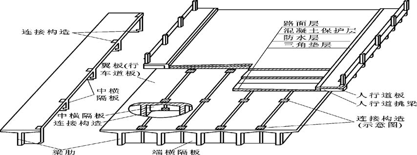 图11-5 桥梁的截面形式 (a)装配式T形梁;(b)箱梁桥横截面