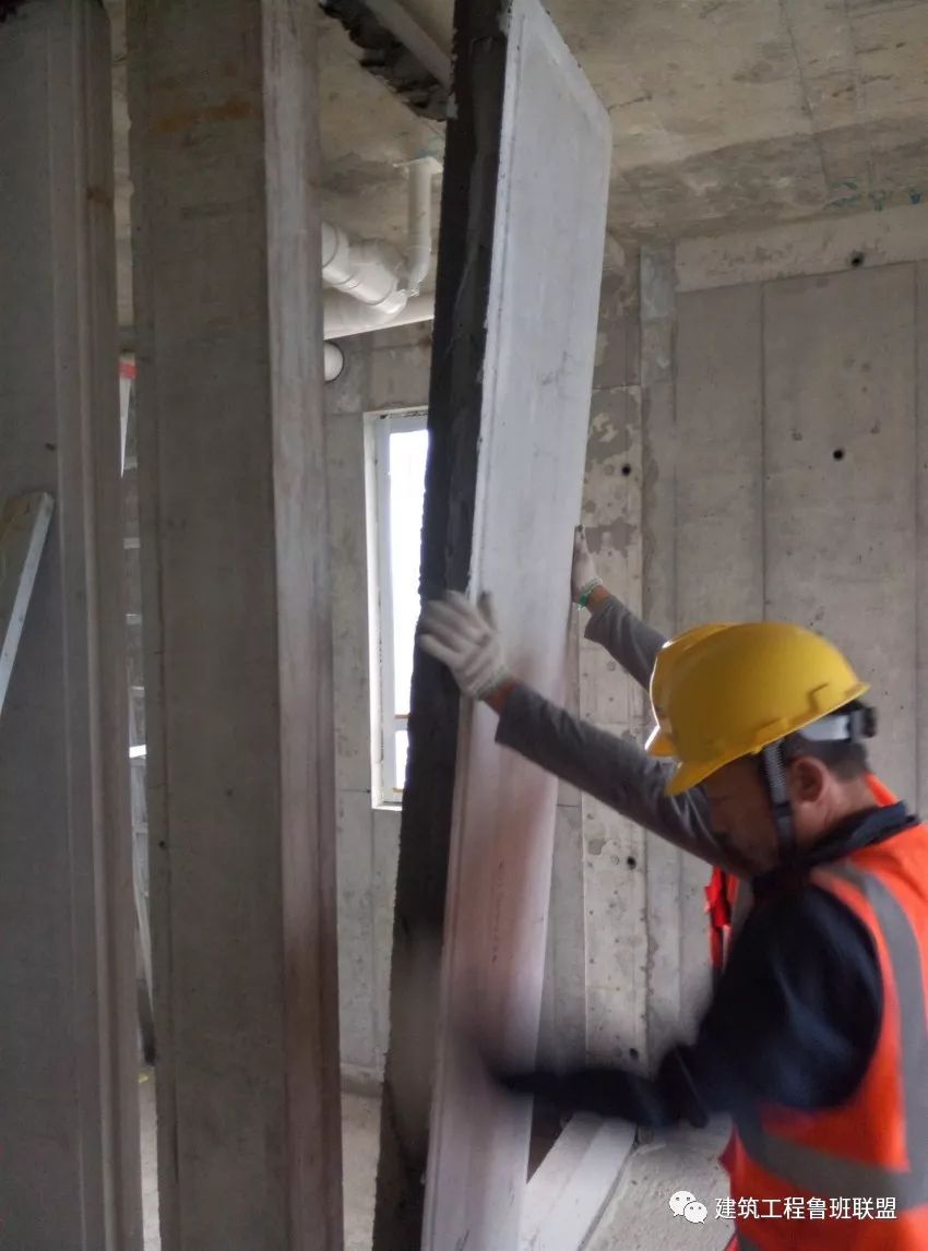 预制内墙板,相对于传统砌筑墙体优势多多,可实现免抹灰,减少了空鼓、开裂等质量通病问题,而且建造速度快,受气候条件制约小,节约劳动力并可提高建筑质量。因此,预制内墙板已被行业广泛接受并应用,特别是如万科、碧桂园等大型房企,已将该技术的应用列入企业标准。下面就来碧桂园项目看一看预制内墙板是如何施工的。