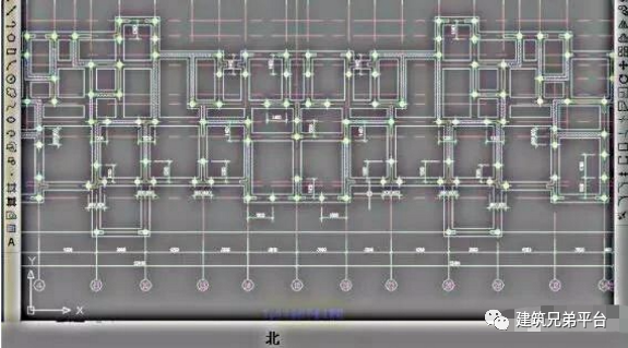 连在十字条形基础下的管桩的断桩长度是:北面的断桩长度长,南面的断桩长度短。