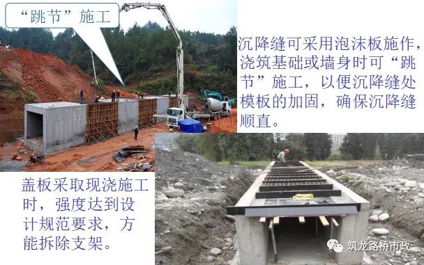 拱涵的基坑开挖及基底承载力检测、基础及墙身施同盖板涵。