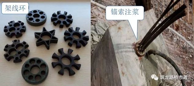 为保证锚索体保护层厚度不小于20mm钢绞线沿锚索体轴线方向每1.0~1.5m设置一架环。