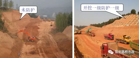 3)土方开挖均应自上而下,开挖坡面一次性成形,且开挖一级防护一级。