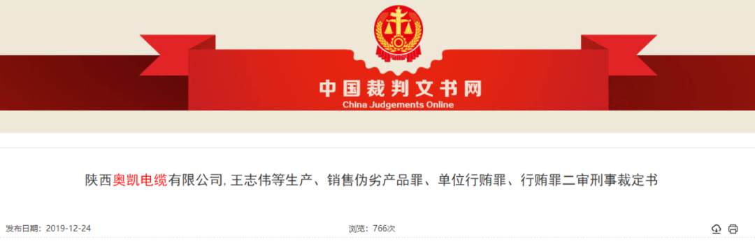 “陕西奥凯电缆有限公司、王xx等生产销售伪劣产品、单位行贿、行贿案”在列其中。