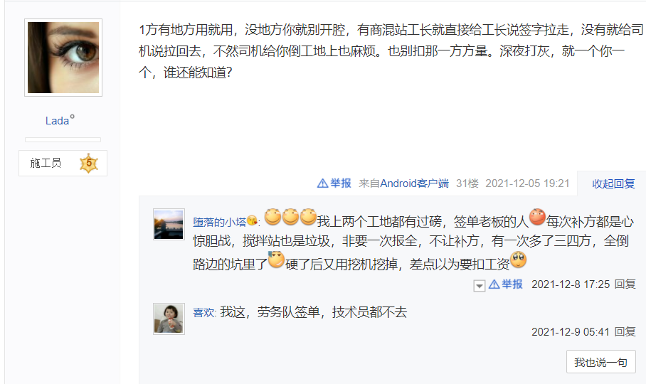 某公司施工员晚上加班打混凝土打到十一点半,因为施工结束多剩下一方混凝土没有合理处置,直接让商砼站拉回去。被人举报到公司后,公司非常严肃得对待此事件,直接发红头文件。