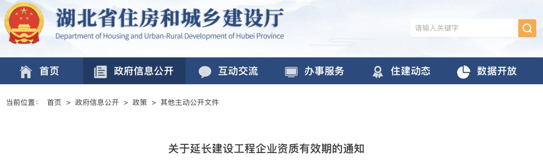 一、我厅核准的建筑业、工程勘察、工程设计、工程监理企业资质和市(州)建设主管部门核准的建筑业企业资质,有效期于2021年12月31日至2022年6月29日期间届满的,自动延续到2022年6月30日。即日起至2022年6月30日止,上述范围内的企业无需申请资质延续,可登陆湖北政务服务网自行下载延期后的电子证书。