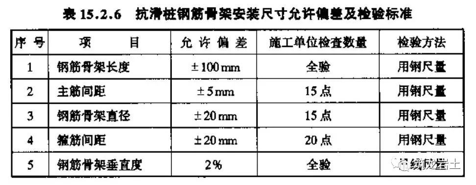抗滑桩多采用灌注桩,要特别把好成孔(包括钻孔和清孔)、下钢筋笼和灌注混凝土等几道关键工序。每一工序完毕时,均应及时进行质量检验,上道工序不清,下道工序就不能进行,以免留存隐患。