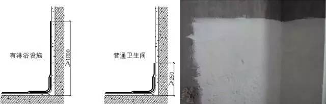 地面四周与墙体连接处,防水层应往墙面上返300mm以上,有淋浴设施的厕浴间隔墙面,防水层高度不应小于1.8m。