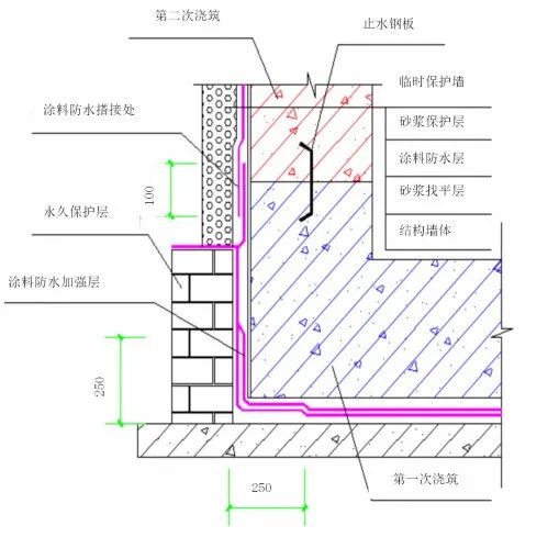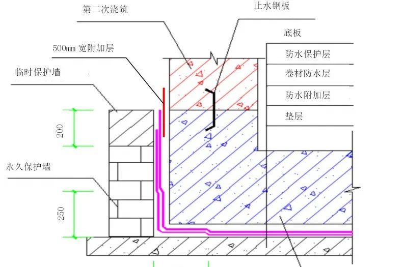 2.5 控制要点:施工缝接茬保护及防水搭接处理,防水满足设计规范功能要 求。