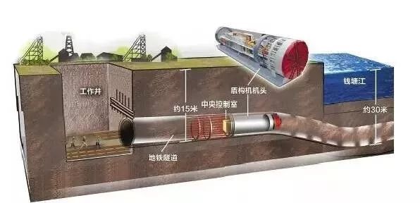使用盾构在地中推进,通过盾构外壳和管片支撑四周围岩,防止发生隧道内的坍塌,同时在开挖面前方用刀盘进行土体开挖,通过出土机械运出洞外,靠推进油缸在后部加压顶进,并拼装预制混凝土管片,形成隧道结构的一种机械化施工方法。