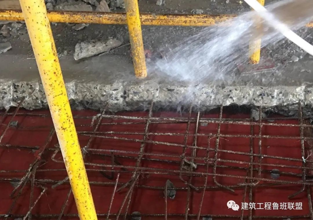 施工要点:剔除完成后采用高压水枪进行两侧施工缝冲洗,将积水抽出,并人工清除干净底部杂物。