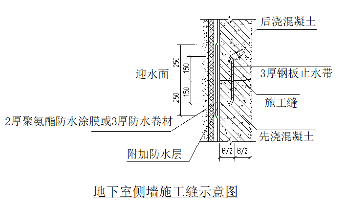 地下室外墙施工缝清理——后浇混凝土——防水附加层——防水层——保护层