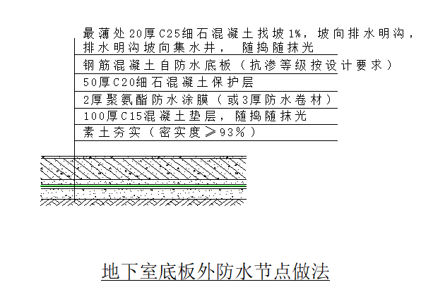 素土夯实——混凝土垫层——防水层——保护层——钢筋混凝土自防水底板——建筑面层