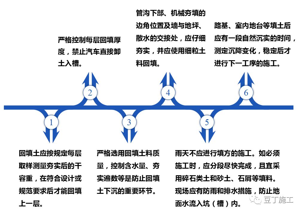 冬季填方每层铺土厚度应比常温施工时减少20%~25%,预留沉降量比常温施工时适当增加。