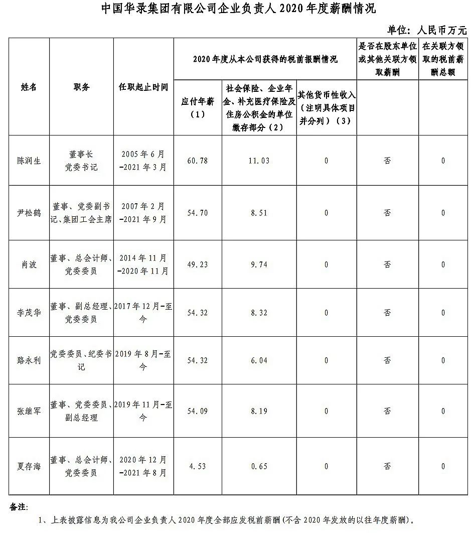 注:如有中央企业一把手在2020年内发生人事变更,该表优先选取2020年内在职时间较长人员。如需了解各中央企业所有负责人2020年度薪酬情况请在下方查看。