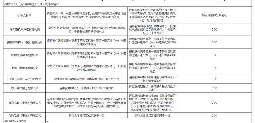蒂升电梯(中国)有限公司 | 投标人名称与营业执照不一致 | 投标人名称与营业执照不一致 | 0.00 |