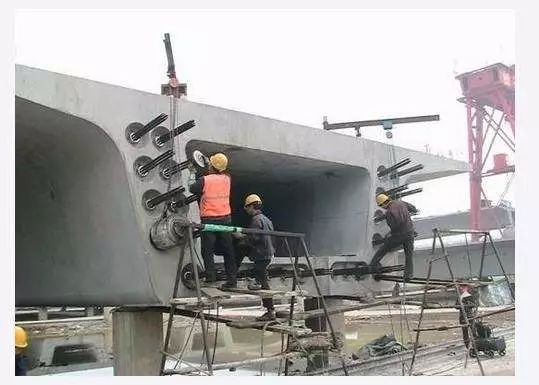 3张拉顺序:张拉应结合模具特点和施工方法,考虑拉力可能对模具产生倾震力矩和偏心力,应按先两边后中间,对称交叉顺序张拉,采用立面张拉。