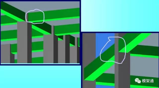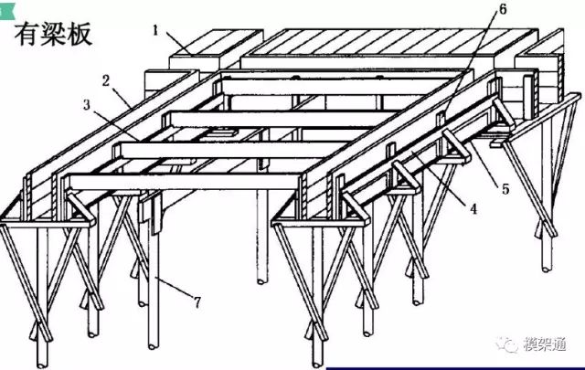 边柱内侧模板面积=结构层高*柱截面周长-各向梁截面面积-柱截面周长与各向梁宽度之和的差乘以平均板厚 根据柱子编号确定同类柱子根数;面积基数可一次算出,再减扣除量。 2、内柱模板面积=结构层高*柱截面周长-各向梁截面面积-各向梁界面周长与各向梁宽度之和的差乘以平均板厚; (1).主、次梁与柱连接时,梁长算至柱侧面;次梁与柱或主梁连接时,次梁长度算至柱侧面或主梁侧面;伸入墙内的梁头,应计算在梁长度内。梁头有捣制梁垫者,并入梁内计算。 (2).圈梁与过梁连接时,分别套用圈梁、过梁定额,其过梁长度按门、窗洞口外围宽度两端共加 500mm计算。 (3).悬臂梁,按悬挑部分计算单梁工程量;嵌入墙身部分分别按圈、过梁计算。 梁侧面模板面积=梁净长*(梁截面高度-平均板厚)*2-次梁宽度*(次梁高度-板厚) 应先计算主梁、后计算次梁。按照梁编号根据同类编号梁的根数一次算出面积基数,在减扣除量。 6.现浇板模板面积:按照板号,根据同类板号数量一次算出面积基数,再扣除减量 某一板号面积=梁间净尺寸 (长度)*梁间净尺寸(宽度)- 不扣除板与柱交接处柱角所占平面面积 现浇混凝土的模板,按混凝土与模板接触面积,以平方米计算。 (2)周边带翻檐的板(如卫生间混凝土防水带等),底板的板厚部分不计算模板面积;翻檐两侧的模板,按翻檐净高度,并入板的模板工程量内计算。 (3)板与柱相交时,不扣除柱所占板的模板面积。但柱与墙相连时,柱与墙等厚部分(柱的墙内部分)的模板面积,应予扣除。 现浇混凝土柱、梁、板、墙的支模高度以3.6m以内为准,超过3.6m以上部分,另按超过部分计算增加支撑工程量。 现浇钢筋混凝土墙、板上单孔面积在0.3㎡以内的孔洞,不予扣除,洞侧壁模板亦不增加;单孔面积在0.3㎡以外时,应予扣除,洞侧壁模板面积并入墙、板模板工程量之内计算。 现场预制混凝土模板,定额按不同构件分别以组合钢模板、复合木模板、木模板,并配制相应的混凝土地膜、砖地膜、砖胎膜编制。