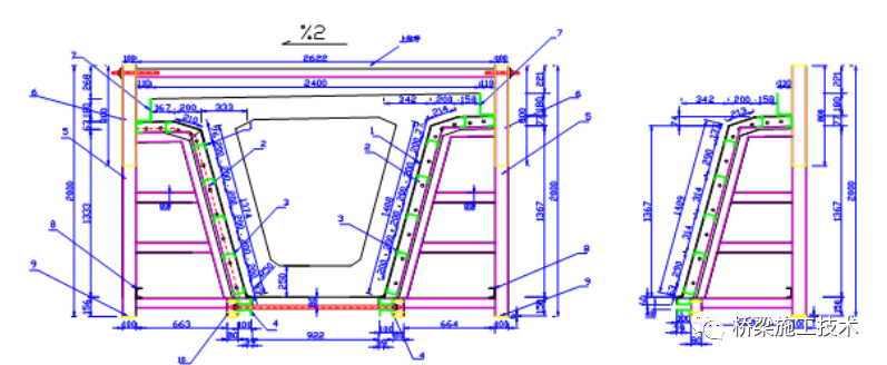 拆模:拆外模时,首先拆出端头模板及端隔板模板及中隔板堵头模,然后松对拉螺杆和两边支撑,拆除两边侧模,因为模板属大面、小厚度钢结构,侧向刚度不大,所以在拆除、起吊等作业时应防止模板发生塑性变形。内模拆除先将先拆板用拆模器拆除,解除了内模的环状构造后依次将内模拆完。。