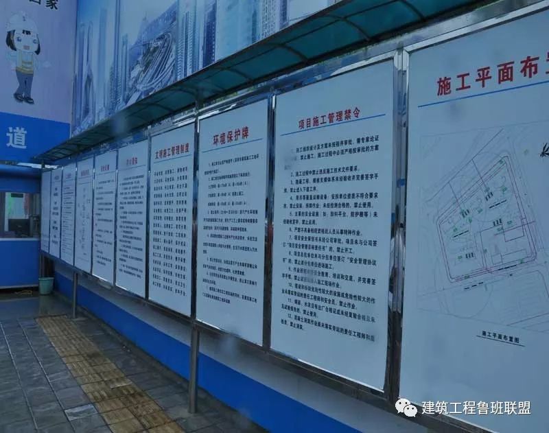 39、大门口处应设置公示标牌,主要内容应包括:工程概况牌、消防保卫牌、安全生产牌、文明施工牌、管理人员名单及监督电话牌、施工现场总平面图