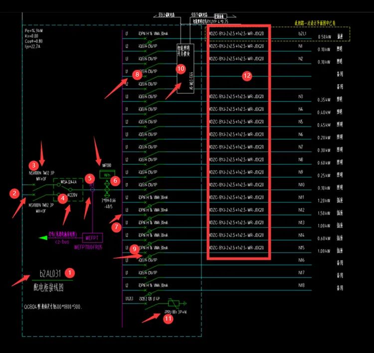 下图是某项目配电柜(箱)系统图,我们根据图纸进行拆分。