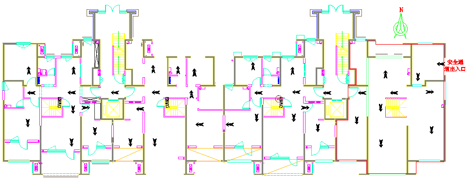 观摩行走路线:样板层出入口位于2#东侧安全通道位置,东、西展示区域由电梯间公共走廊及单元分户墙连接: