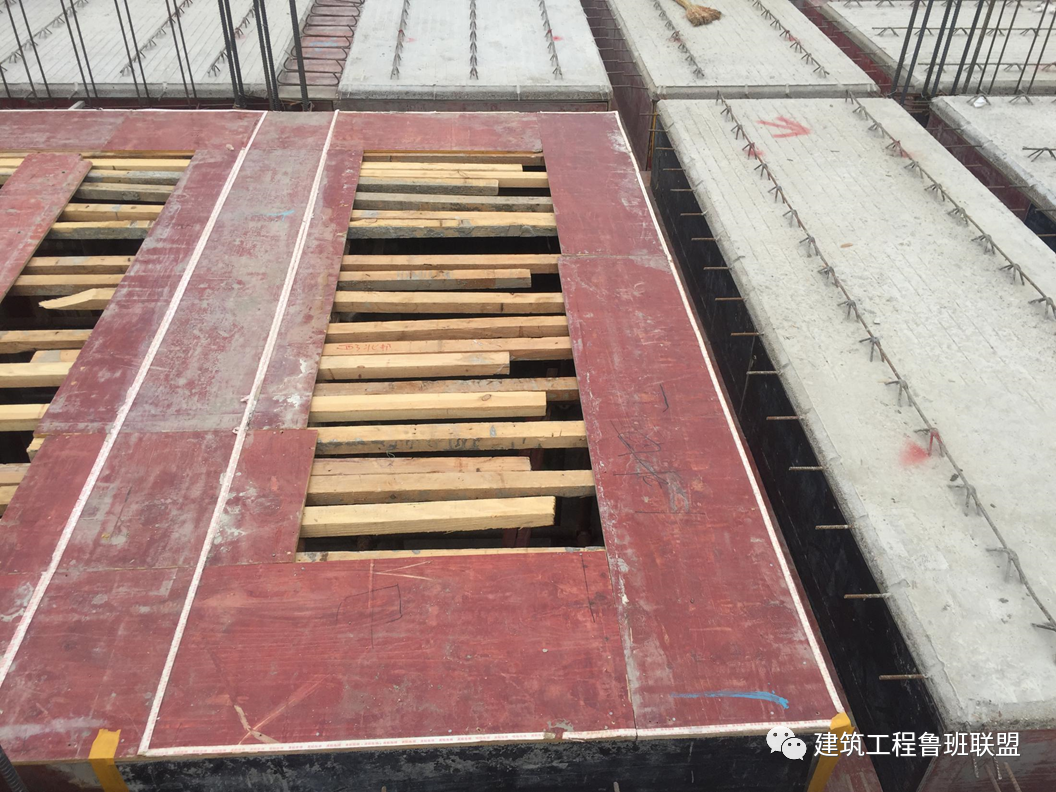 2、板带位置模板支撑加固不到位,浇筑砼后导致模板变形漏浆。