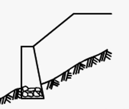 当地基承重力不足且墙趾处地形比较平坦,而墙身又超过一定高度时,为了减小基底压应力和增加抗倾覆稳定性,常常采用扩大基础。