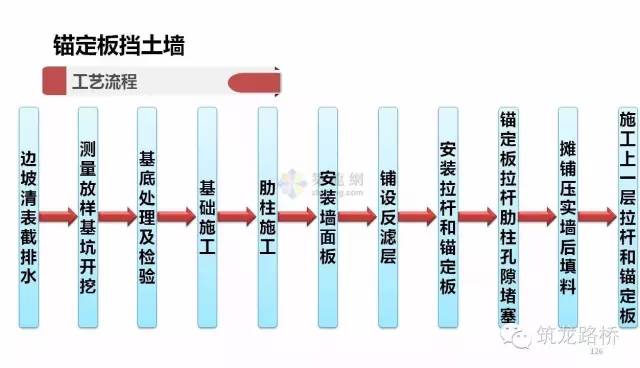 ◆ 定板式挡土墙:是由钢筋混凝土墙面、钢拉杆、锚走板以及其间的填土共同形成的一种组合挡土结构。