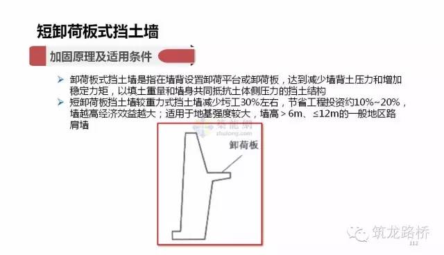 路肩挡土墙:设置在路肩部位,墙顶是路肩的组成部分,其用途与路堤墙相同。它还可以保护临近路线的既有的重要建筑物。