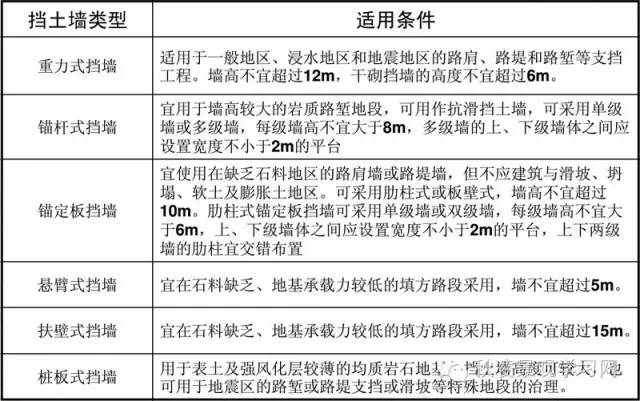 ★ 各挡土墙的适用条件: