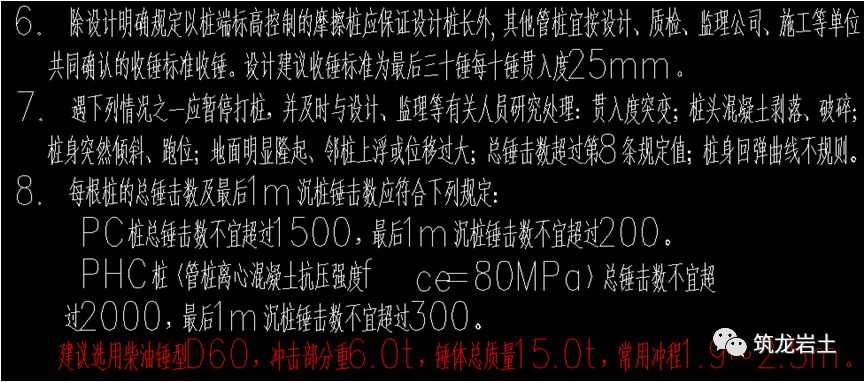 PC桩总锤击数不宜超过2000,最后1m沉桩锤击数不宜超过250;