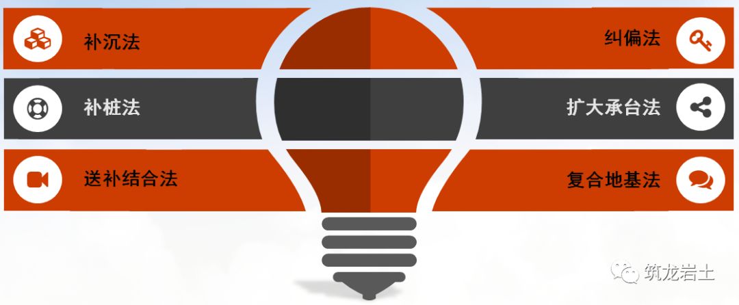 综合处理法、采用外围补桩,增加周边嵌固,防止或减少桩位侧移。