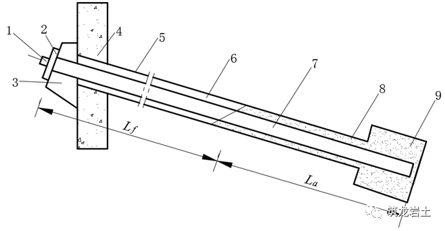 边坡工程中使用的锚杆是一种安设在岩土层深处的受拉杆件,其一端与工程构筑物相连,另一端锚固在岩土层中,必要时需对其施加预应力,以承受岩土压力、水压力或风荷载等所产生的拉力,再将拉力传递到深部稳定岩土层中,达到有效承受结构荷载及防止边坡变形失稳的目的。