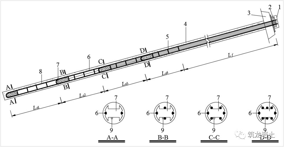 当锚固段较长时,初始荷载作用下,黏结应力峰值在临近自由段处,而锚固段下端的相当长度上,则不出现黏结应力;
