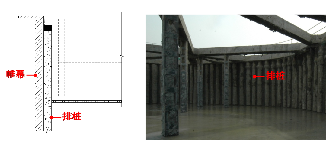 若场地条件限制无法满足大放坡开挖的需要,可采用土钉墙支护,减少放坡范围。1、土钉形式有钢管土钉和钢筋土钉,坡面采用钢筋网片喷射混凝土面层;2、当土钉墙后存在滞水时,应在含水层部位的墙面设置泄水孔或采取其他疏水措施,减小墙背后的水压力,提高土钉墙稳定性;3、当采用预应力锚杆复合土钉墙时,预应力锚杆应采用钢绞线锚杆,且锚杆应布置在土钉墙的较上部位;当用于增强面层抵抗土压力的作用时,锚杆应布置在土压力较大及墙背土层较软弱的部位。1、重力式挡墙形式:一般选用双轴或三轴水泥土搅拌桩,搅拌桩可按搭接施工,搭接长度控制在150mm~200mm,挡墙顶面宜设置混凝土面板;2、一般土层条件下,搅拌深度小于16m的应优先选用造价更低的双轴,超过16m的应选用三轴,遇到淤泥等软弱土层,水泥掺量适当提高;3、水泥土搅拌桩应按格栅布置,建议格栅布置形式如图所示(以双轴为例)。1、一般选用双轴或三轴搅拌桩,搅拌桩兼作止水帷幕应按套打一孔施工,确保止水效果;2、一般型钢租赁期应控制在6个月以内,当租赁期超过6个月,型钢租赁成本较高,目前租赁市场主要型钢类型为H400×400、H500×200、H700×300、H800×300等,可选用插一跳一、插二跳一、密插形式,墙体刚度依次增强;3、型钢应做减小阻摩处理,方便地下室结构完成后型钢拔除回收。1、当基坑开挖面涉及地下水时,应在灌注桩外侧设置隔水帷幕;2、帷幕选型:若隔水帷幕深度小于16m,建议采用造价较低的双轴;若帷幕深度超过16m或者浅层存在深厚密实砂层,建议采用止水效果更好的三轴;3、帷幕深度:对于仅需坑内疏干降水的基坑,软土地区粘性土弱透水层中隔水帷幕深度应控制在基坑基底以下6~7m即可(如上海地区项目);若遇粉性、砂性土等(较)强透水层,且含水层厚度适中、底埋深不深,可考虑帷幕隔断该含水层(如南通、武汉沿江地区);若基坑基底承压水稳定性不满足要求需降承压水,且承压含水层厚度不厚、层底埋深不深,隔水帷幕也应尽量隔断承压含水层,以减少降压降水对周边环境的沉降影响;4、为避免支护结构的浪费,可利用原本在基坑完成后通常废弃的围护排桩作为正常使用阶段主体地下结构一部分,形成“桩墙合一”,围护桩可承担大部分的土压力,减小地库外墙受力,可有效减小地下室外墙厚度、边桩数量,增大地下室建筑面积,实现节能降耗,具有较好的经济效益。软土地区三层地下室以上的基坑采用“两墙合一”地墙较排桩方案较为经济。所谓“两墙合一”即在基坑工程施工阶段地下连续墙作为围护结构,起到挡土和止水的目的;在结构永久使用阶段作为主体地下室结构外墙,通过设置与主体地下结构内部水平梁板构件的有效连接,不再另外设置地下结构外墙。地下连续墙的常用厚度为600mm、800mm、1000mm、1200mm。2、当浅层分布有粉性土或砂性土较厚时,地墙两侧可适当采用水泥土搅拌桩进行槽壁预加固。原则上搅拌桩深度只需覆盖粉性土或砂土层即可,避免在无加固条件下进行地墙槽段成槽施工(否则在无槽壁加固条件下进行成槽施工,容易造成地墙充盈系数过大而大量增加混凝土浇灌量,后续超灌混凝土的凿除量较大也会增加成本);3、地墙成槽泥浆护壁:应优先选用自然造浆泥浆护壁成槽,若自然造浆无法满足成槽要求,再选用人工造浆;4、地墙槽段施工槽段外侧可设置高压旋喷桩进行接缝加强止水,墙内侧应设置扶壁柱、排水沟结合构造砌体墙的防渗构造措施。