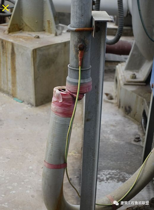 错误:连接部位一半设置在墙内,安装维修都不便,接地跨接也无法连接。