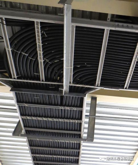 常见问题:喷淋头距电气桥架太近,水将喷撒在电气桥架内。