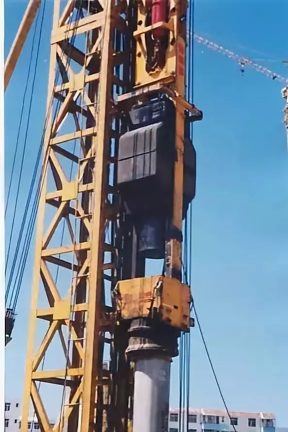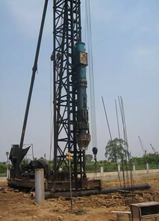 柴油打桩机由柴油桩锤和桩架两部分组成。桩架有专用的,也有利用挖掘机或起重机上的长臂吊杆加装龙门架改装而成。柴油桩锤按其动作特点分导杆式和筒式两种。导杆桩锤冲击体为气缸,它构造简单,但打桩能量小;筒式桩锤冲击为活塞,打击能量大,施工效率高,是目前使用较广泛的一种打桩设备。
