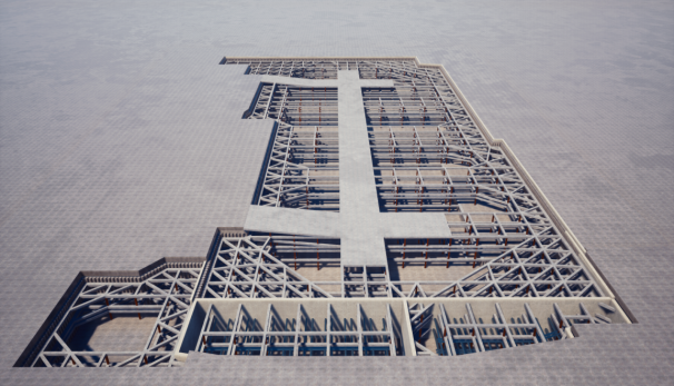 因地下室正负零施工需要考虑到混凝土浇筑、钢筋、木工加工棚等临时堆场问题,计划先完成非栈桥板区域,支撑梁先拆除非支撑梁区域;待非支撑区域地库顶板浇筑形成后,将材料堆场逐步转移。站前板区域考虑到混凝土浇筑问题,先拆除中间部位,待该部位混凝土浇筑完成后,由中间向两侧拆除,浇筑一块拆除一块区域;考虑到有些部位无法采用天泵浇筑,拟采用地泵浇筑。