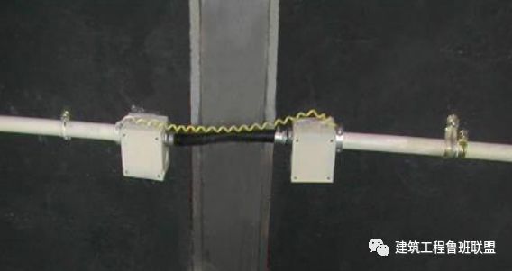 电线管穿越变形缝采用金属软管连接两线盒,并作跨接处理。