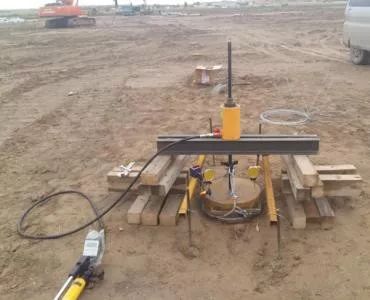 静载荷试验是在原位条件下,逐级施加模拟建筑的实际荷载并同时观测地基相应的变形的一种原位检测方法。检测采用慢速维持荷载法。试验的反力装置采用压重平台装置,压重量不少于预定最大试验荷载的1.2倍,压重应在检测前一次加上,并均匀稳固放于平台上。试验加载装置采用油压千斤顶,最大加荷值不小于设计要求压力值的2倍。加载分10级进行,每级荷载为最大加载量的1/10,其中第一级可取分级荷载的2倍加荷。卸荷时每级卸载量取加载时分级荷载的2倍逐级等量卸载。