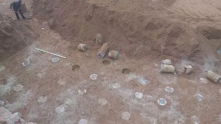 所有桩完成后,剔除0.5m桩头,挖除保护桩长内的桩身土。铺设级配碎石垫层(褥垫层)。