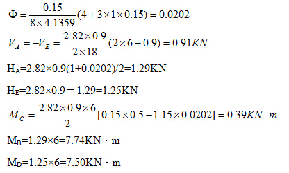 HA=HE=qlλΦ/4=2.82×18×3×0.1322/4=5.03KN