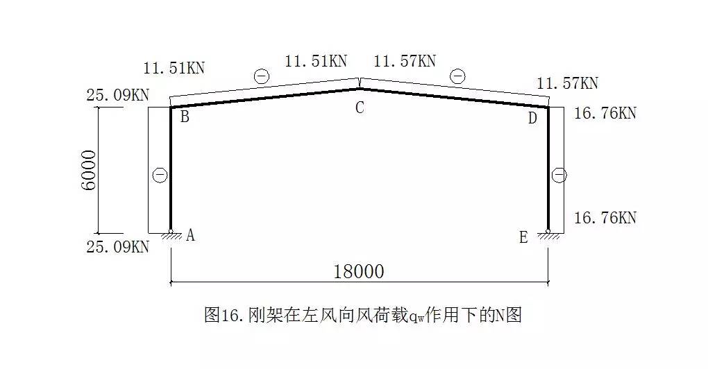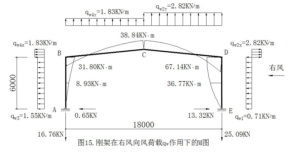 (1)在迎风面横梁上风荷载竖向分力qw2y作用下