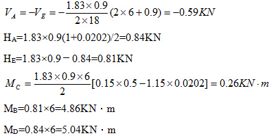 HA=HE=qlλΦ/4=1.83×18×3×0.1322/4=3.27KN