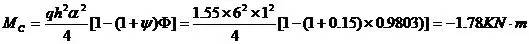 MC= ql2[α2-(1+ψ) Φ]/4=1.83×182×[0.52-1.15×0.1322]/4=14.52KN·m