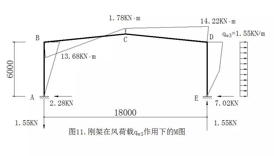 (7)用叠加绘制在风荷载作用下刚架的组合内力。